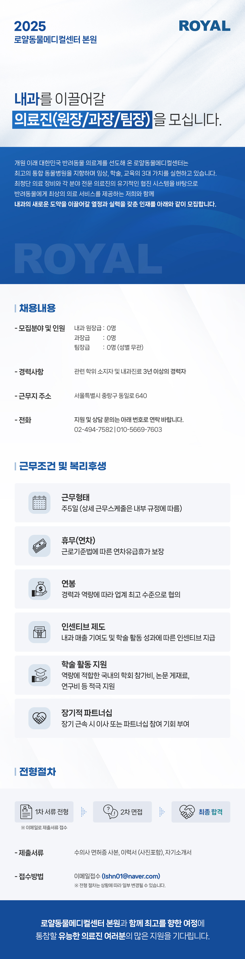 2025 로얄동물메디컬센터 본원_내과 수의사(원장,과장,팀장급) 채용공고